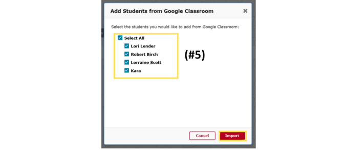 - Select all students and “Import” to add them to the roster. Note: You do not need to edit the user name or password for students. They will log in through your SSO.
